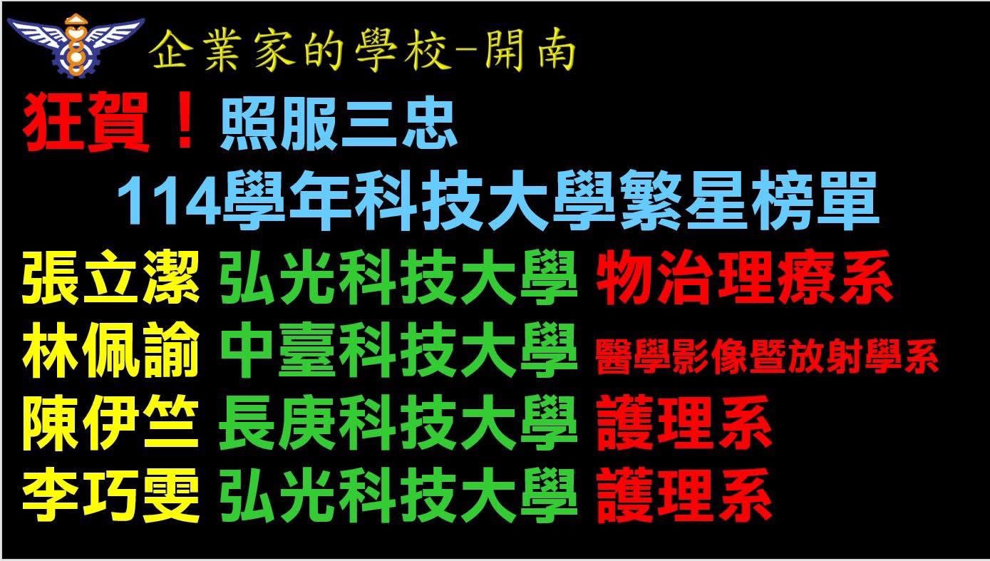 【優秀畢業生 ✨再創佳績】開南中學照顧服務科113學年度升學榜單!