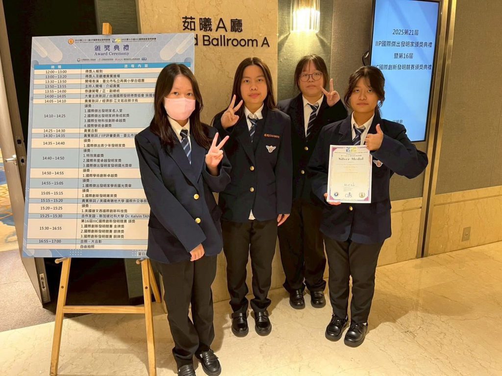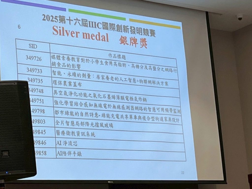 賀!開南中學照服科照服二忠 劉采燕、藍靖淳及照服一忠 王苡言、邱姿穎同學參加【2025年第16屆 IIIC 國際創新發明競賽】以作品【AI陪伴手錶】榮獲銀牌獎!感謝王鈺婷老師、陳心紜老師的用心指導