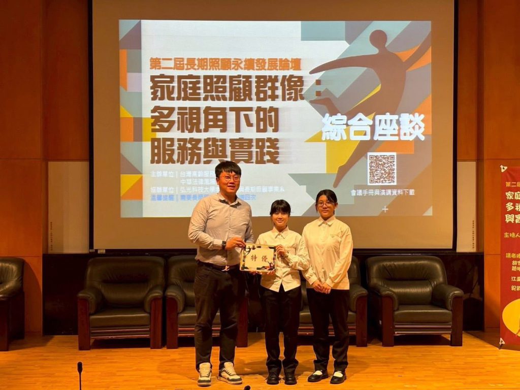 賀!本校學生參加弘光科技大學「第二屆長期照顧永續發展論壇」—「家庭照顧群:多視角下的服務與實踐」競賽,榮獲 特優 與 優等 的優異成績!感謝陳心紜老師的用心指導