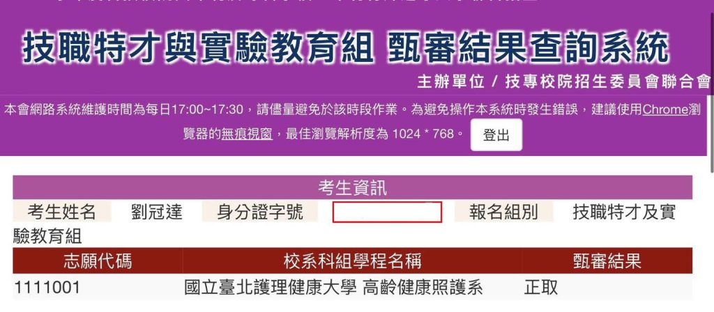 賀!照服三忠曾○軒(新北市立積穗國中畢業)114學年度大學單獨招生錄取國立暨南國際大學-高齡健康與長期照顧管理學士學位學程。