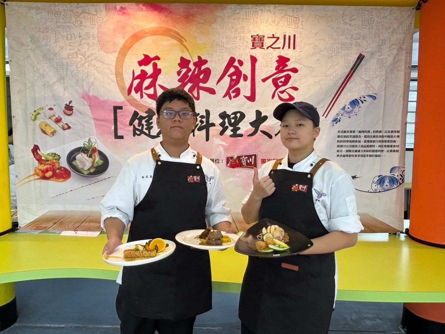 在本屆「2025 寶川盃麻辣創意健康料理大賽」中,本校學生展現驚人實力!在面對全台 52 人次 的強勁對手壓力下,憑藉紮實的廚藝與獨具匠心的創意,一舉奪下: