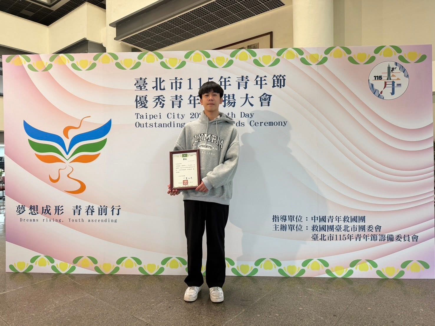 恭喜!開南中學餐飲管理科三年仁班 ✨李其諺同學 榮獲「台北市優秀青年」!